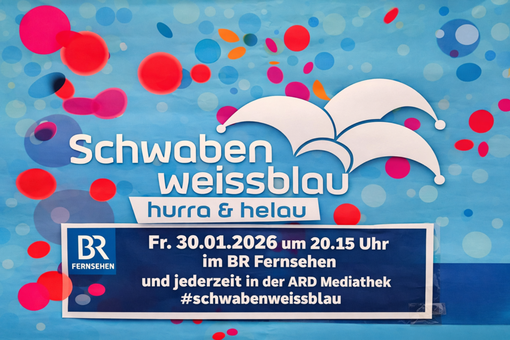 Hurra und helau! Auch dieses Jahr wurde die legendäre Faschings-Prunksitzung „Schwaben weissblau, hurra und helau“ wieder in der Stadthalle Memmingen aufgezeichnet – und ich war mittendrin! Die Aufzeichnung fand im Januar statt, aber die Ausstrahlung im BR Fernsehen erfolgt erst am 30. Januar 2026 um 20:15 Uhr.